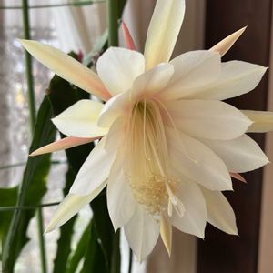 クジャクサボテンその② 白花が咲きました✨ 月下美人とまでは言いませんが、我が家には似つかわしくないくらいエレガントです🥰