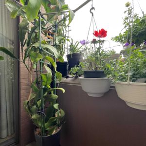 極小ベランダの大型植物 強光好きの月下美人 毎年 夏場は鉢を持ち上げて 物干しの支柱に括り付けていた が‥何せ大きい! 台風などの際の上げ下ろしは大変❗️ そろそろ限界を感じてる‥ →セリエで見つけた 鉢台に乗せてみる 赤花のクジャクサボテン① 昼過ぎなら 日陰になる場所の為か 花数が少ない。 株数を3→2株へ減らし 肥料も混ぜて植え替え。 月下美人の置き場だった 日照時間多めの場所へ 置いてみる 赤花のクジャクサボテン② 室内南側育ち ①からさし芽した若い株だが 太い茎はコチラが多い 初花見れるとイイナ^ ^ 手前小鉢は月下美人 簡単に発根するので、 つい捨てられないで揷し木 冬場は室内置きだった フウリンブッソウゲ ハイビスカスの仲間 去年の夏 花に惚れてしまい衝動買い💦 匍匐性木は どう枝が広がっていくのだろうか❓