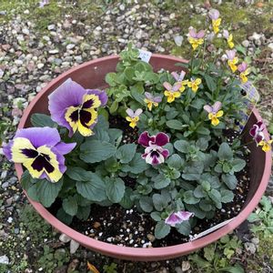 こんにちは🌿 昨夜からの強風でどこも枯れ葉です🍂🍂〜🍂🍂 ①淡いアプリコットカラーのシャコバサボテン…昨日の今日のお花だったんですね💦 今年は短日処理したので蕾がいっぱい出て来ました🤗 この色合いが大好きです🧡🩷 ②〜⑤ビオラ アイクルールとソルベブラキカムの寄せ植え(後方にチューリップを仕込んであります) アイクルールの色合いが良い感じになって来ました😊 シエルブリエとエスカノールの掛け合わせらしいので焼けが入って来たら嬉しい😁 ブラキカムは夏越しが出来た株です(一時は枯れそうだったけど💦) ブルー系の寄せ植えなのに余っていたチューリップ球根は赤?黄色?…選択間違えましたね😙