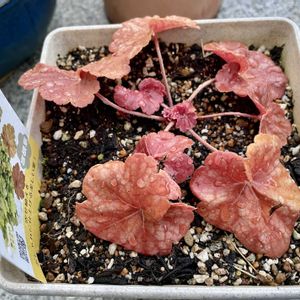 植え替えの砂を買いに行っただけなのに。。。ダメなのに。。。オレンジのヒューケラドルチェが150円なんだもの!! ②③シャコバサボテンの花が飛びました🩷