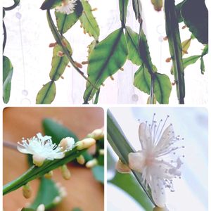 リプサリス シュガーフロスト グリーンさんの所から嫁いできたシュガーフロスト 風徐室にいたけどマイナス気温が続いたので室内に移動して半月ほど経ったのですがあちらこちらに花が😁 今の時期に花を見れるなんて✨ 何だか得した気分です😊
