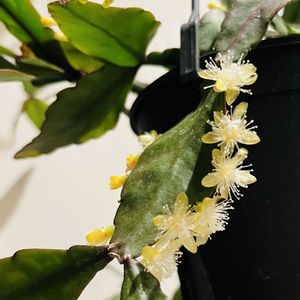 リプサリス ケレウスクラ✨ お花が咲きました♡ 半透明の花びらが可愛いです🧚 顔を近づけると、ほのかに爽やかな香りがします。