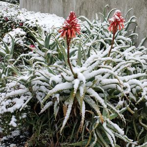 寒波で地元でも雪がちらつきました❄ キダチアロエ ワスレグサ科、ツルボラン亜種 アロエ属 南アフリカ原産