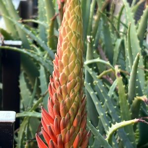 今日のお花*アロエ* ①薬用植物園 ②③④筑波実験植物園 ⑤我が家のアバレルアロエ アロエで化粧水 重宝💚