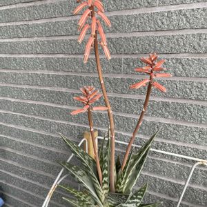 アロエ 千代田錦 チヨダニシキの花が咲きました❗️ アロエは世話要らずで助かります😊 子供も顔を出してきました。