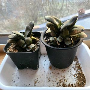こんにちは☀︎ 日本海側は、寒いです((゚Д゚ll)) 時には定価で🪴 ①②白っぽくてカワイイ、ガステリア´◡` ③お渋な色で、イイじゃな〜いとも思ったら、シノクラッスラは、お花が咲くと枯死することを後で知る。 蕾付を喜んで持ち帰った事を後悔(╥△╥;) ④🛟で持ち帰って立派に育ってるけど、見たらまた欲しくなった、ダメな私↷( ó╻ò)