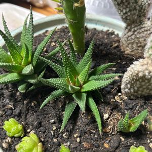 お疲れ様です、こんばんは🌛 アロエ 十二の巻サンです😆 冬の間、室内で育てていたら いつの間にか変な所から芽?が…😅 しかも6個…🤩 取り敢えず、様子見です🤗