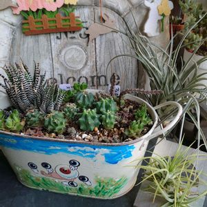 こんばんは✿·͜·ᰔ お庭日和🌿畑日和🥬 過ごしやすい休日でした🤗 1⃣プレ企画で頂いた グラン・マさんのリメ缶に 寄せ植えしました🎶 十二の巻、オヤジみたいな コロコロサボテン ちょこっとクラッスラ 入れて盛り盛り目指します💚 まめお君のエアプランツ添え•*¨*•.¸¸♬︎ 2️⃣カモミールさんのリメ缶💚 こちらは十二の巻を中心に 良い感じに溢れてきたよ•*¨*•.¸¸♬︎ 3️⃣みたりん産鉢 いつもの如く飾っておきたいけど 植えたい葛藤🤭 植えました😆 ㊧オレンジスノーボール錦 ㊨デレンベルギー 4⃣畑の脇スペース アイリス満開🩵💛 ̖́- 5️⃣会社の方にもらった苗 リーフレタス🥬 スクスク育ってそろそろ食べ頃です(,,>᎑<,,)♡