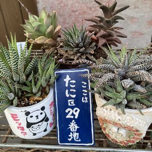 硬葉系のハオルチア😊 十二の巻としてホームセンターでお迎えしましたが、なんとなく新芽の色が薄く斑入りのようにも見えるので白蝶っぽいかな?と思っています😆 最後picは数年前に分けた子株です☺️ すっかり大きくなりました✨