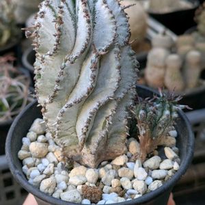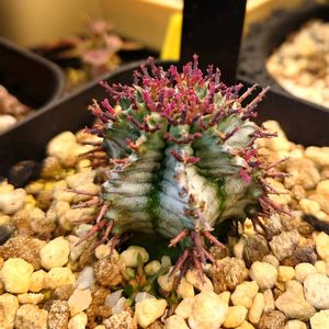 ユーフォルビア・特白肌胴太ホリダ✨ 1/17(土)にゆうゆうグリーンさんへ行ってきました。 そしててこの雌株マークのついたホリダを発見!いつか交配とかできたら...とお迎えしました。 お店の方が、「このカキコの親はう〜んと、これね。ここで一番がんばってくれてる雌株だから」と紹介してくれました。写真5枚目参照✨ いつか雌花が咲いてくれますように✨