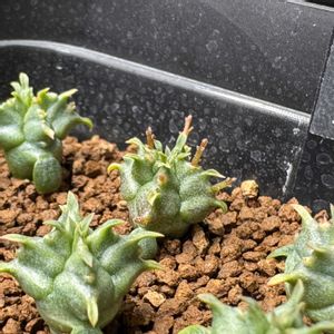ユーフォルビア・ホリダ まだ小さいのに、 地中から脇芽が出てきてる。🌵 寒いのに頑張るなぁ。