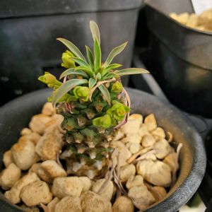 ユーフォルビア ソテツキリンの小さな黄色い花🌼 花言葉は小さな愛だって😊