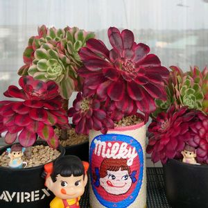 おはようございます ☀ 💮アエオニウム 雪姫錦 😊ペコちゃんリメ缶出来上がったので 植え替え、後ろはイーマリーちゃんです 🏷️ペコちゃん祭り 🏷️斑入り見つけ隊♪ 🏷️錦の日 😅さーせん、1日遅れです