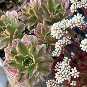 アエオニウム スィーティオ 1月の寒波の時に入れ忘れてて カッチンコッチン😶🌫️ 無事に復活してきたかな😊 黄砂で みんなツヤ感なし😅 休眠期の用意が 始まってきた子がチラホラと☺️ 真ん中が ギュッと💓