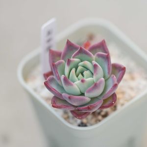 エケベリアの中でも観賞価値が高いといわれる美しい品種。ライトグリーンの葉先がピンク色に美しく染まりま