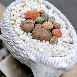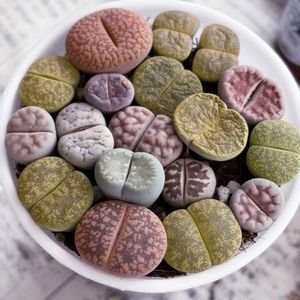 ユニークな姿形をしたリトープスは、南アメリカなどに生息する多肉植物です。品種によって多種多様な花色や形状があり、石を擬態した珍しい植物です。 コロンと...