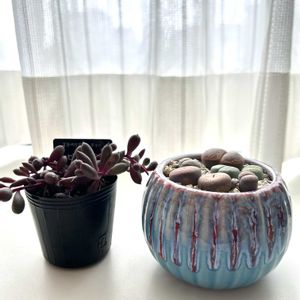 有楽町交通会館のマルシェで、ルビーネックレスとリトープスを買いました。 ルビーネックレスは小さなさつまいも🍠みたいに色付き、リトープスは植木鉢も美しくて、どちらもずっと眺めていたくなります。 ルビーネックレスは以前、⭐️にしてしまったので、今度は慎重に、慎重に、育てます❗️