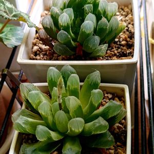 我が家のハオルチアてす。 とてもスカスカで、プクプクにしてあげたいけどわかりません😅 花芽が上がってきてるのでご機嫌さんやとは思います😊 リトープスさんは皆頑張って脱皮中〰️ ただ1つ紫が気に入ってたのに緑色になってて。 普通?🤔