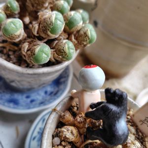 有楽町交通会館のマルシェで、ルビーネックレスとリトープスを買いました。 ルビーネックレスは小さなさつまいも🍠みたいに色付き、リトープスは植木鉢も美しくて、どちらもずっと眺めていたくなります。 ルビーネックレスは以前、⭐️にしてしまったので、今度は慎重に、慎重に、育てます❗️