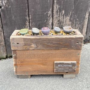 インスタのお友達が細長い陶器鉢にコノフィツムを植えてはって 私もリトちゃん植えたくて 相方さんがほったらかしにしてた端材で作ってみましたw ちなみにリバーシブルw