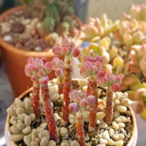 風は冷たいですが久しぶりの晴れ☀️ 仕事から帰って多肉棚眺めていたら 近くのローソンの店員さんが割引券を配っておられて「多肉見せて貰って良いですか?」と🎵「わぁ~スゴイ!」「可愛い」 嬉しいフレーズがいっぱいで~😆⤴️💓 しかも他で配ってた店長さんともう1人の人まで呼んで来て3人で眺めて店長さんが「写真撮っても良いですか?」と沢山📸パシャ😆🎶帰られる時には「ここまで配りに来て良かった」「癒されました」嬉しい言葉を沢山頂きましたぁ~🎵 🏷️ごっつご機嫌♪ ①雷童錦サン~ちょこんとピータン🎶 雷童錦サンに日があたってとっても綺麗だったので~📸パシャ♪ ②今年脱皮一番乗りの子😅 下の方から覗いてましたぁ~🤣