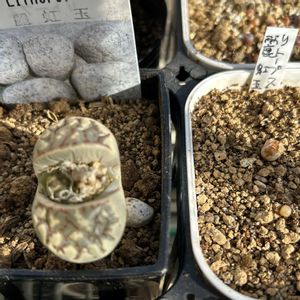 はい❗ 一度も上手くいった事無いリトープスさん🫣 やめろやめろと思いながら珍しくホムセンでみっけ🤭 この色にやられました👍 今度こそ、今度こそ…🫡ティ 🏷毎月16日は色の日 主催 areo会長🌈 協力 黒T会🌈