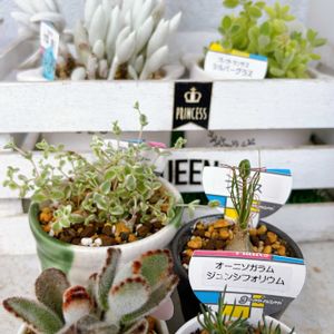 2/27・2/28にお迎え ----------------------------------- "増やさない"と決意したばかりなのに.. あ迎えしちまった😂 だって、この時期かわいい子ばかり店頭に並んでるんだもの💚 初めて、小型の球根植物が売られていたので、これを逃すといつ会えるか....と、悩んだ末に購入。 ・銀月は、多肉ちゃんを知るきっかけになった子で、白くて一目惚れ😍でも育てるの難しいんだよね。。。 今回はリベンジです💪🏻 ・シルバーグラスは、いい香りに惹かれた♡ ・ジャイアントラビットは、うちにはいないので、即決🌱 ・リトルミッシーは、ここGSで知って、ステッチが気になったので、育ててみようかなと。 ・2ページの愛染錦さんは、斑入りは大好き💕 →3ページのリトープスも最近増えたのに、また2苗追加。一緒に植えちゃえば、問題なし✌🏻