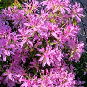花散歩で✨ 🩷💚💕💚🤍🟢🟣🟤⚪🌿💚🤍♪ 1️⃣今日のお花✨ ツ ツ ジ 満開🩷💕 2️⃣斑入りアマドコロ 3️⃣我が家のリトープスさん達! 只今…脱皮中 お手伝いしたくなるのをウ~ン我慢ガマ ン🫠 4️⃣八重咲き小手毬 5️⃣灯台躑躅 今日も 笑顔😄で過ごせますように💐 今週も宜しくお願い致しま🙇
