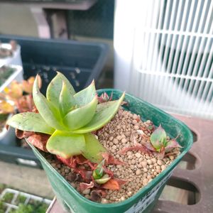 先端がほんのり赤く可愛らしい葉を持つ多肉植物。