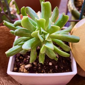 筒状の形の葉っぱを持つ。葉にうぶ毛が生えているユニークな多肉植物。