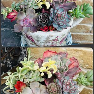 あけましておめでとうございます⛩ 寒暖差が大きく 体調崩しやすいので気をつけてくださいね。 今年もよろしくお願いします。 今日の写真📷は・・・ 奥側⬆️ 秋に、多肉ミニ花壇(葉挿しちゃん)を解体。ミニミニのコを中鉢に(みどりのまとめ「多肉花壇できるかな」参照)。 根づいて育ってます🌱 編みぐるみは、恒例の 編みぐるみ作家さん作😃 ちょうど編みぐるみで見えないけど、クラッスラ属 クーペリーちゃんは、すでに増産されそうな予感😅💦 手前右↘️ シャビアナちゃん。 前回 2025年8/3に載せてますが、紅葉してかわいくなってます。 右側が30センチ超えになったコをチョンパした上側✂️ また大きく育つかな😅 少々 水不足気味。 左手前↙️ パシフィック マジック ナイトちゃん。 こちらもちょっと枯れ気味な感じもありますが、2025年9/1に比べてこちらもかなり紅葉してます🍁 2枚め(番外編) こちらも恒例の 近所からの初日の出🌅 3枚め(番外編) こちらも載せたことあると思うけど、わが家(母から継承)の お雑煮。 こんな時期にインフルエンザ😷になってしまった娘も、お雑煮(具、汁)いっぱい食べられました🥢