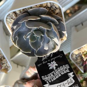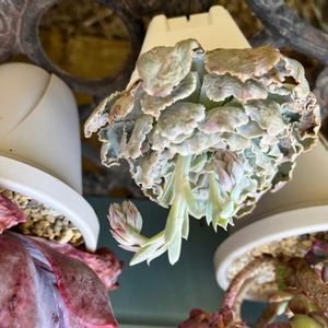 2026/03/21、エケベリア、祇園の舞。 2月24日購入。 11cm。 細かなフリルの葉が波打ち、 ぎゅうぎゅうに葉が重なっています。 豪ジャスなドレスのような品種です。 シャビアナの選抜種で 葉にコブができたものです。