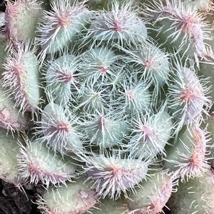 白い粉で覆われた葉を持つ多肉植物。群生して育つ。