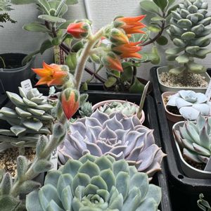 昨年何とか夏越しに成功してレウィシア 春に一輪花を咲かせてくれましたが この暑さの中で又花をつけてくれました 木漏れ日の差す場所の棚が気に入ったのかな 今年も上手く夏越ししてね モケモケのエケベリア セトーサのお花が咲きました 暖かみのある色合いのお花がとても可愛いです💕 ベビーサンローズもお花が咲きました 斑入りの子は薄いピンク色だけど この子は濃いピンクのお花 花がなくても可愛いけど 花が咲くとパッと華やかになって良いね🥰