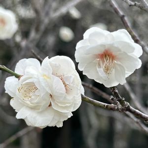 ウメ 昨日はお日柄もよく、用事を済ませた足で小さな公園に探梅に☀たくさんの梅の中から本日は白と淡いピンクの花梅と実梅をセレクトヽ(^o^)丿 ⦿月影:野梅系・青軸性 : スッキリと萼は緑💚♡ ⦿曙:野梅系・野梅性 : 小さなピンク🩷 ⦿白難波:野梅系・難波性 : 勢い良く八重に重なっている ⦿花香美:野梅系・野梅性:実梅 : 梅園の中でも一番香り豊かでした (人*´▽`)+・。* ⦿南高:野梅系・野梅性 : 実梅 : 梅干しといったらこれだな!