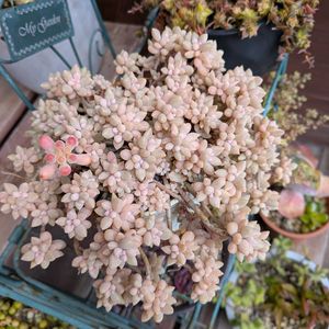 白い粉で覆われた葉を持つ多肉植物。群生して育つ。