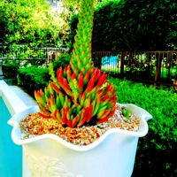 ぷっくりした肉厚で光沢のある葉と、季節に毎の色彩の変化が特徴的な多肉植物です。夏場は緑色ですが、秋〜