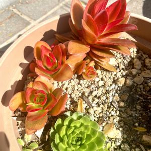 多肉の色が綺麗に紅葉 新芽のグリーンも綺麗あ🥰 1⃣火祭りと、爪蓮華 2⃣火祭り 3⃣4⃣5⃣爪蓮華 火祭りは紅葉真っ盛り 爪蓮華は新芽がゾクゾクと