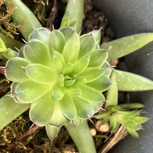 ツメレンゲ 葉が増えてる❣️ 花が咲いたみたい❣️ センペルビウムみたい❣️ ②はお迎えした頃 はじめて育てる植物なので、変化が楽しめます♪😁