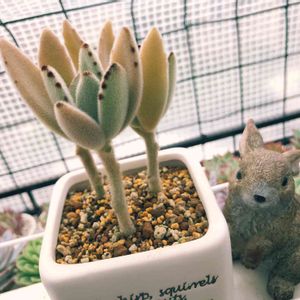 こちらの園芸店は、2回目の来店デス。 前回は、いつ来たっけかなぁ… 夏だったかなぁ 😯💭 可愛い子がいるかなぁ… ⚆.̮⚆💛と ぁ!前回も見かけた ウサギさんを見つけました💛 .𖥧𖧧 ˒˒.⚘.。🐇𓂃𓂂𖡼.𖤣𖥧𓈒◌܀𖥧𖧧 ˒˒. これは、運命💖ネ。と思って 狩ってきましたョෆ。 これから寒くなるけど、 元気に育ちます様に (ღˇᴗˇ)。o♡ 冬は、お部屋に入れョෆ。 この子の名前は、月兎耳であってますか?