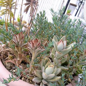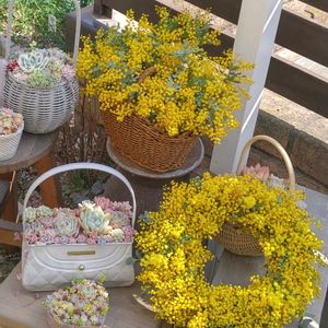 久しぶりの投稿です😅 3月に📸したものです ①ミモザと多肉 ミモザリース今年も作りました🥰 🧺に切ったミモザを入れただけでも可愛い💕 ②やはり今年は花付きがイマイチでした 原因は一昨年までは旦那さんが会社の人からもらった謎の固形肥料を撒いていたそうで💦 昨年はそれがなかったのが花付き少なかった原因みたいです😅今年は固形肥料を撒こうかな😊 3月中のお迎え多肉記録 ③地元でリエール苗の販売会ありました(プチコマあきさん)置き場所もないし覗いてみて良いのあったらお迎えしようと思って行ったけど…ご覧の通りです🤣前から気になってた苗と土付きでお得な苗など。新品種はお迎え少なめ😅 ④地元の多肉イベントでお迎え ドロサンお花咲くタイプお迎えしました😊 レッドダイヤモンドは紅宝石と同じかな? お安くなってました ドロサン以外は格安苗ばかりですが5個で1000円😳小さいけど1つ200円でお得♥ 掘り出し物の苗お迎え出来てヽ(=´▽`=)ノ🎶🎶 ⑤昨年お迎えして花を見ることが出来なかったヘリクリサム ルビークラスター 蕾が上がってきました✨嬉しい💕 ドライフラワーにしたいけど どのタイミングでカットすればいいのかな🤔開く前がいいのかな? 携帯の調子が悪く投稿サボってました😅 また普通に使えるようになったので沢山📸していきます 植え替えなど少しづつ進めています 調子の悪そうな水の吸いがあまり良くないのとかを中心に植え替えしていて 昨年から植え替え記録を付けているので見直すと同じ子がいくつかあって 何年も植え替えなくても元気なタイプもいれば1年に1回植え替えしないといけないのとか種類によって?植え替え頻度も違いますね😅