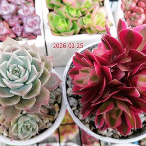 久しぶりの投稿です😅 3月に📸したものです ①ミモザと多肉 ミモザリース今年も作りました🥰 🧺に切ったミモザを入れただけでも可愛い💕 ②やはり今年は花付きがイマイチでした 原因は一昨年までは旦那さんが会社の人からもらった謎の固形肥料を撒いていたそうで💦 昨年はそれがなかったのが花付き少なかった原因みたいです😅今年は固形肥料を撒こうかな😊 3月中のお迎え多肉記録 ③地元でリエール苗の販売会ありました(プチコマあきさん)置き場所もないし覗いてみて良いのあったらお迎えしようと思って行ったけど…ご覧の通りです🤣前から気になってた苗と土付きでお得な苗など。新品種はお迎え少なめ😅 ④地元の多肉イベントでお迎え ドロサンお花咲くタイプお迎えしました😊 レッドダイヤモンドは紅宝石と同じかな? お安くなってました ドロサン以外は格安苗ばかりですが5個で1000円😳小さいけど1つ200円でお得♥ 掘り出し物の苗お迎え出来てヽ(=´▽`=)ノ🎶🎶 ⑤昨年お迎えして花を見ることが出来なかったヘリクリサム ルビークラスター 蕾が上がってきました✨嬉しい💕 ドライフラワーにしたいけど どのタイミングでカットすればいいのかな🤔開く前がいいのかな? 携帯の調子が悪く投稿サボってました😅 また普通に使えるようになったので沢山📸していきます 植え替えなど少しづつ進めています 調子の悪そうな水の吸いがあまり良くないのとかを中心に植え替えしていて 昨年から植え替え記録を付けているので見直すと同じ子がいくつかあって 何年も植え替えなくても元気なタイプもいれば1年に1回植え替えしないといけないのとか種類によって?植え替え頻度も違いますね😅