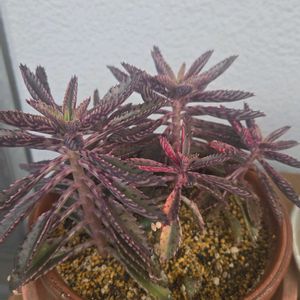 柱状に育つユーホルビア・ラクテアが帯化し、葉要素が抜けるようになった品種です。タイで栽培された物が多