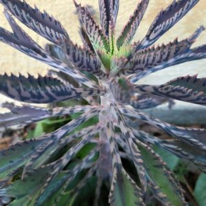 道端。一株だけグィーンと伸びた錦蝶。根元にもギッシリと仔株が育っています。 ※仔株の付き方(葉の全体に付く)を見ると、不死鳥のようです。タグを訂正します。詳しい方の投稿を拝見して気が付きました。