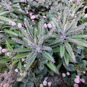 道端。錦蝶のようですが、以前見掛けた株より青々としています。 ※仔株の付き方(葉の全体に付く)を見ると、不死鳥のようです。タグを訂正します。詳しい方の投稿を拝見して気が付きました。