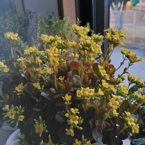 おはようございます。◕‿◕。 部屋の中のカランコエ 蕾、ぷっくり、やっと開き始めました💓