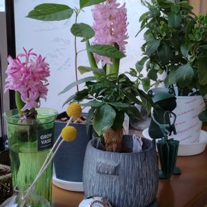 こんにちは〜🙋 暖かくなって来ました〜🎶 今日は趣味園日和、これから薔薇の囲い紐外しでーす🐥 今日の我が家🏠の下駄箱の上〜🙋 ヒヤシンス寒い玄関内長持ちで〜す