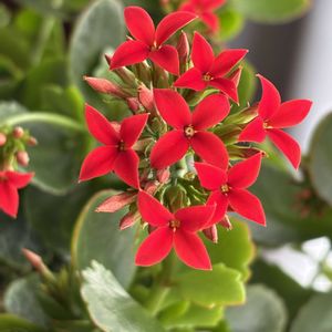 1年前にお迎えしたカランコエが お世話の甲斐あり 鮮やかな赤色で咲いてくれました❤️💚✨ まさに『幸福を告げる』という花言葉にピッタリな気分にさせてくれているお花です🎵
