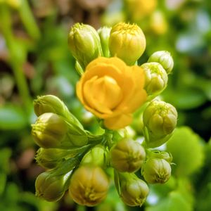 八重咲きの黄色のカランコエです。 茎がグ~ンと伸びて咲きました。 まるで菜の花のようです。