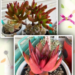 この暑い中 綺麗な多肉を見ると励まされる😊 庭の鉢で元気に育ってる多肉を 集めてみました😃
